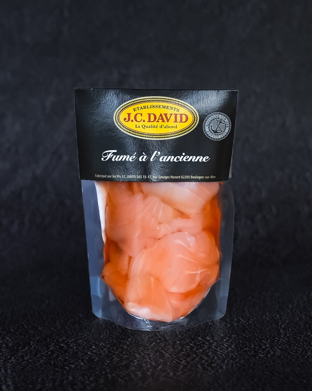 Ingrédients : SAUMON (salmo salar, élevé en Ecosse et autres pays de l’Atlantique Nord Est), sel, épices, sucre.